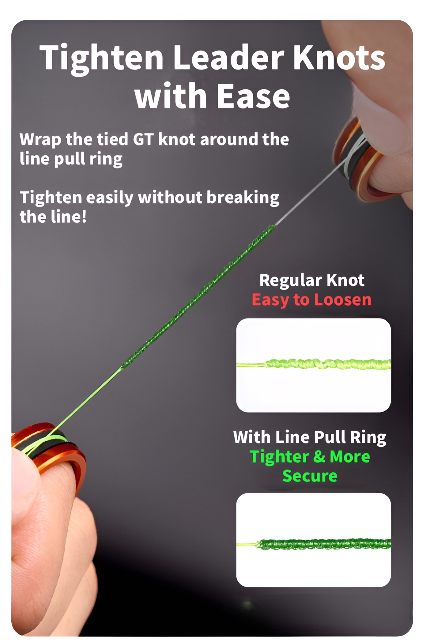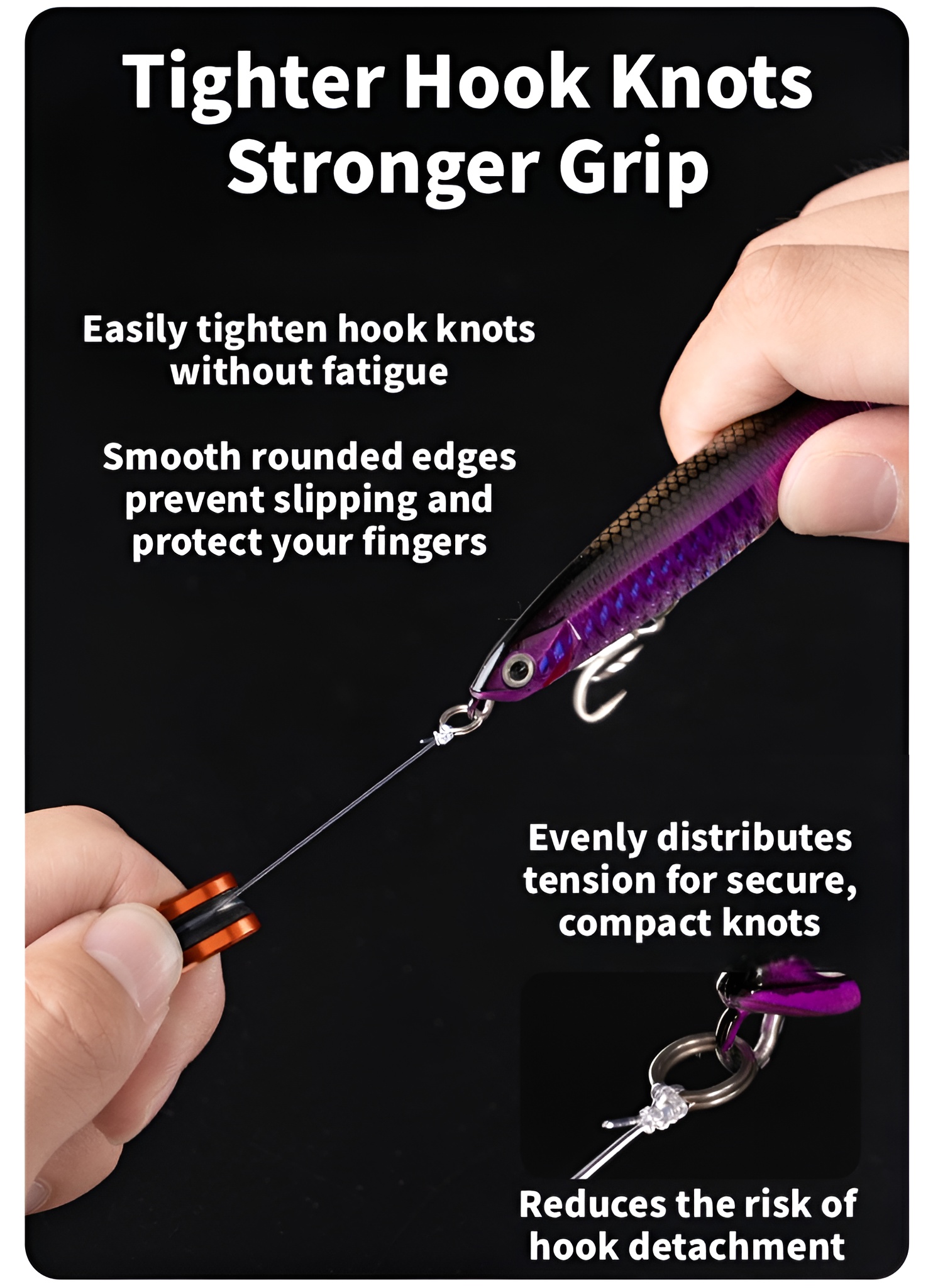 Compact aluminum line puller rings for safely tightening knots or pulling snagged lines. Ergonomic anti-slip design with anodized finish for durability and corrosion resistance. A must-have utility tool for every angler.