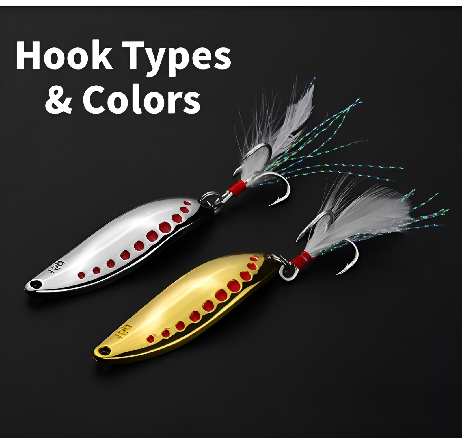 High-performance metal spoon lures featuring lifelike leech and viper designs with blood-groove hooks. Designed for long casting and aggressive strikes from mackerel, bass, and trout. Durable plating and realistic finish for superior flash and vibration.
