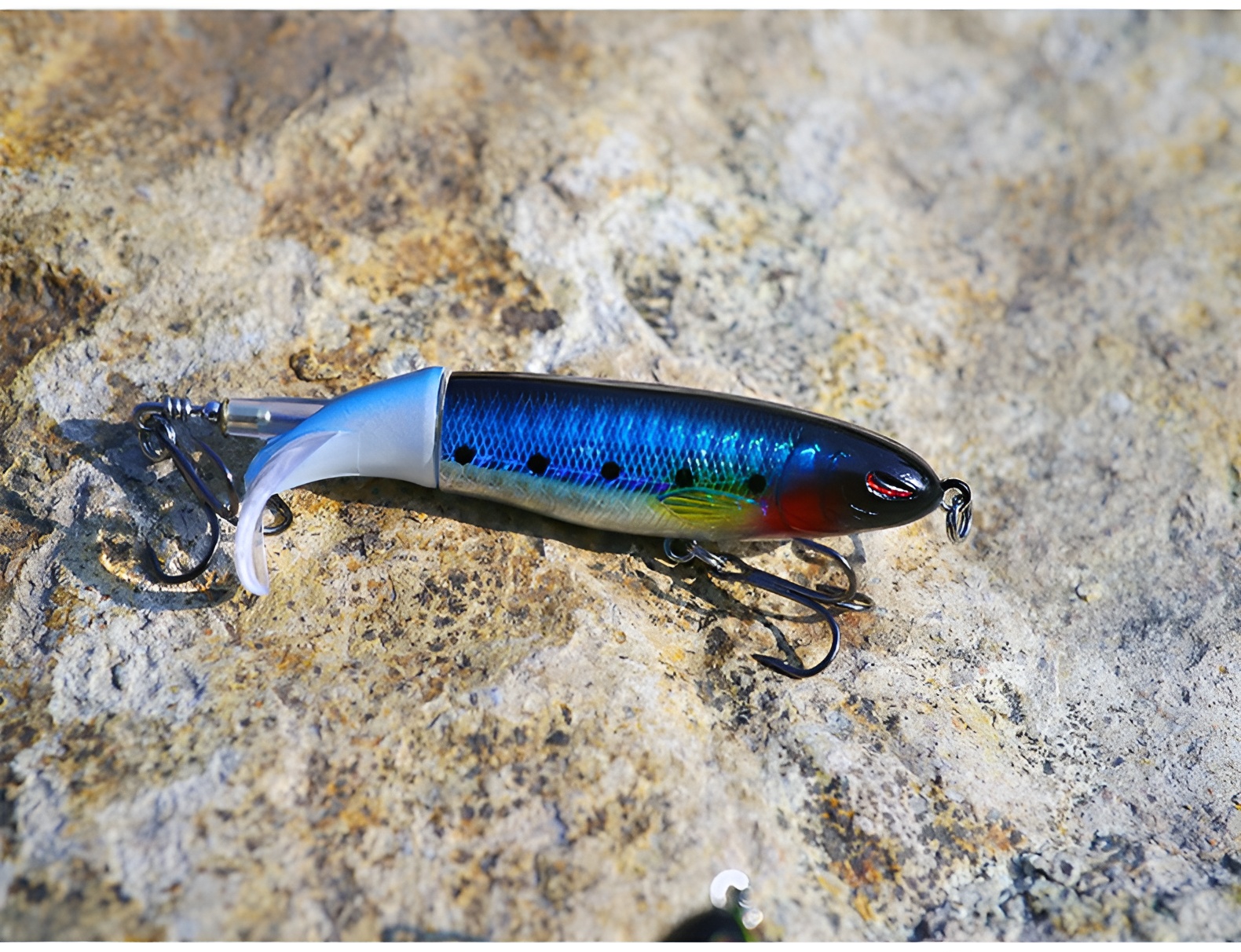 A high-performance prop bait with front and rear propellers that create splash and noise to trigger surface strikes. Features 3D lifelike eyes, premium black nickel hooks, and realistic fish patterns for aggressive topwater action.
