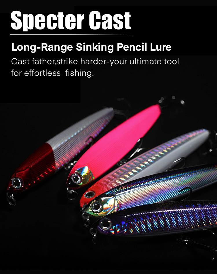 Shadow Dart sinking pencil lure with fixed weight system and reinforced hooks. Designed for long casting and stable swimming action, effective for bass, trout, and saltwater species. Available in multiple weights and colours.