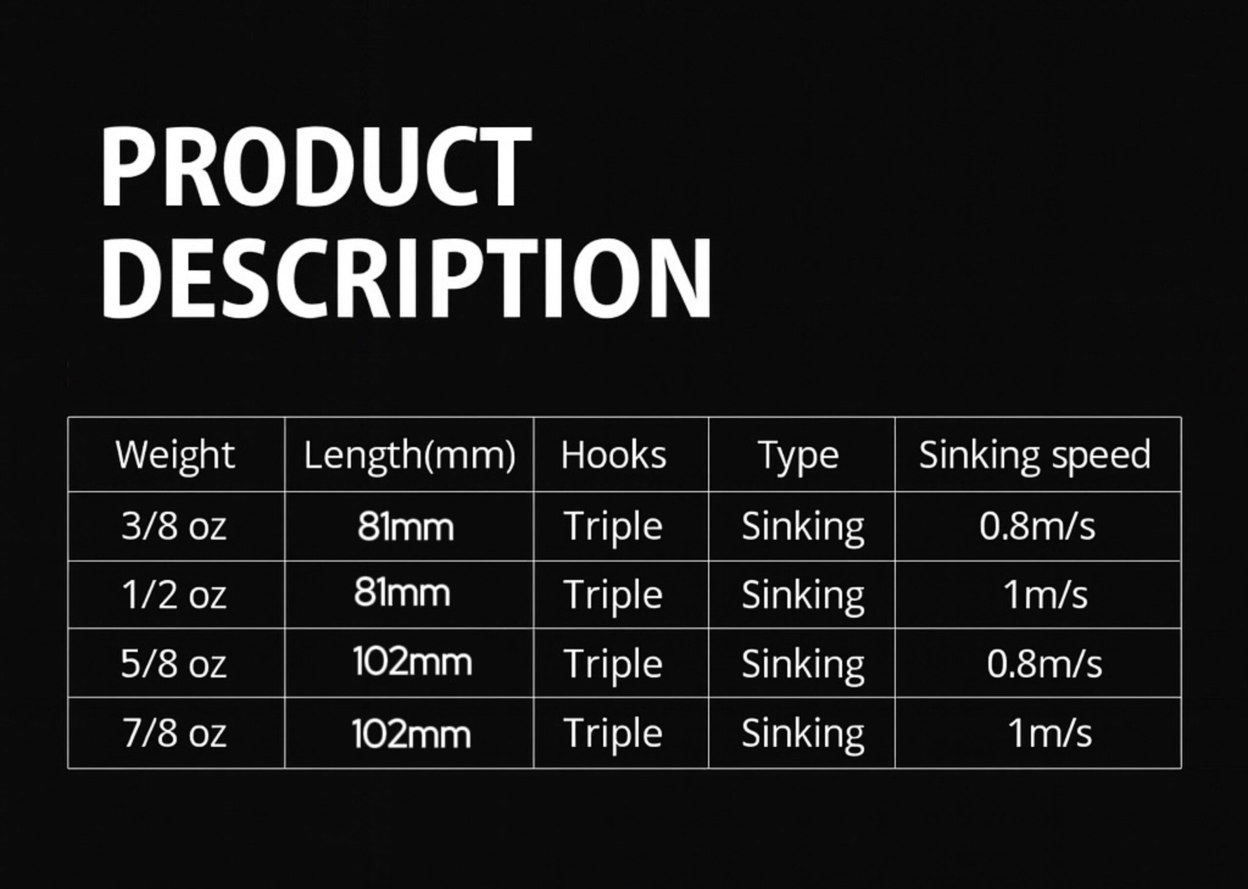 1/2 oz, 3/8 oz, 5/8 oz