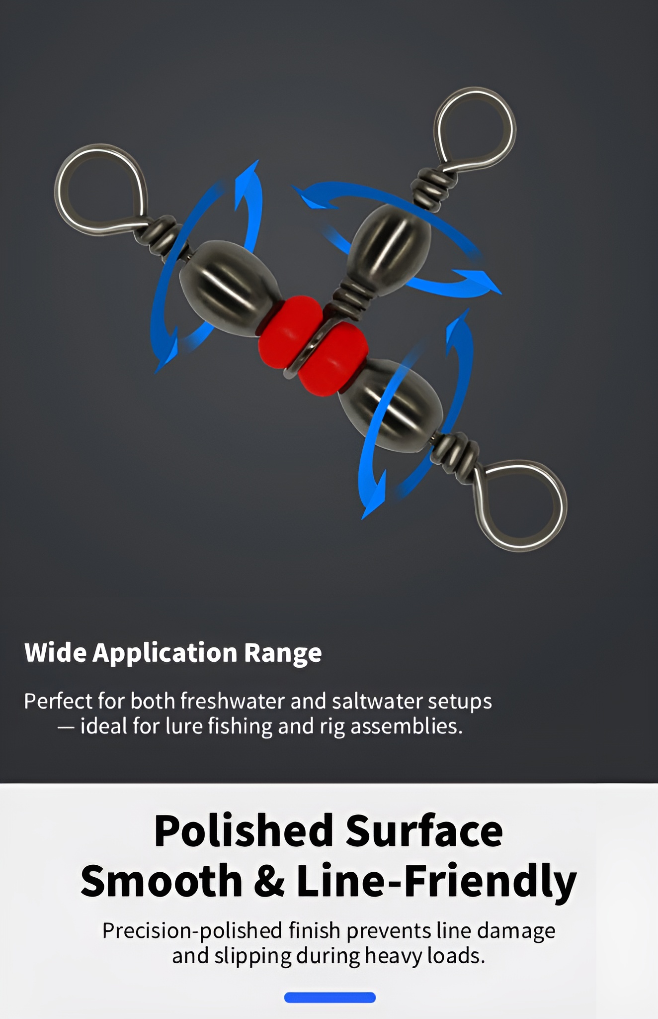 High-strength Japanese-style three-way swivels for building dropper rigs and bottom setups. The black nickel finish reduces glare and corrosion, ensuring smooth rotation and knot protection in both saltwater and freshwater.