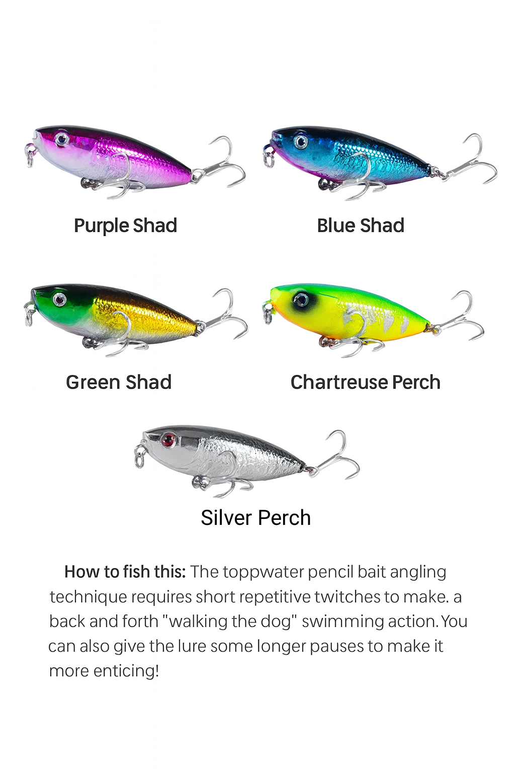 Be the first to review “Walk-the-Dog Floating Pencil Bait – Topwater Lure with Treble Hooks”