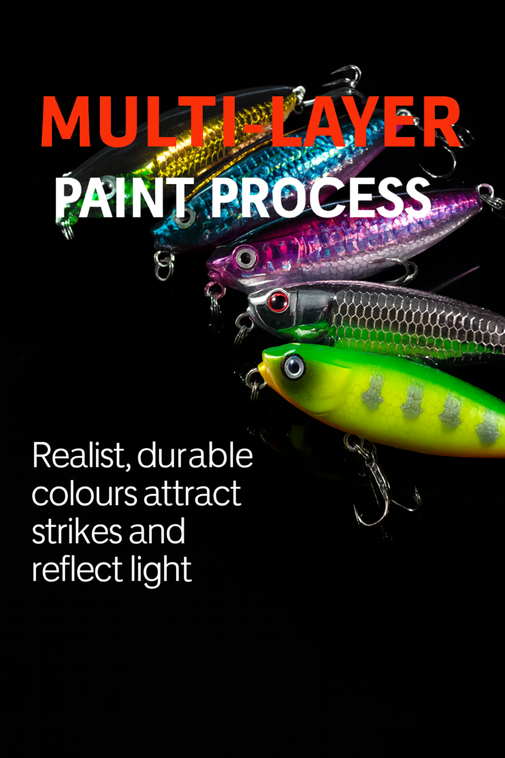 A compact floating pencil lure with a realistic swimming motion for surface strikes. Features sharp black nickel treble hooks and vibrant scale finishes, perfect for micro topwater fishing in freshwater.