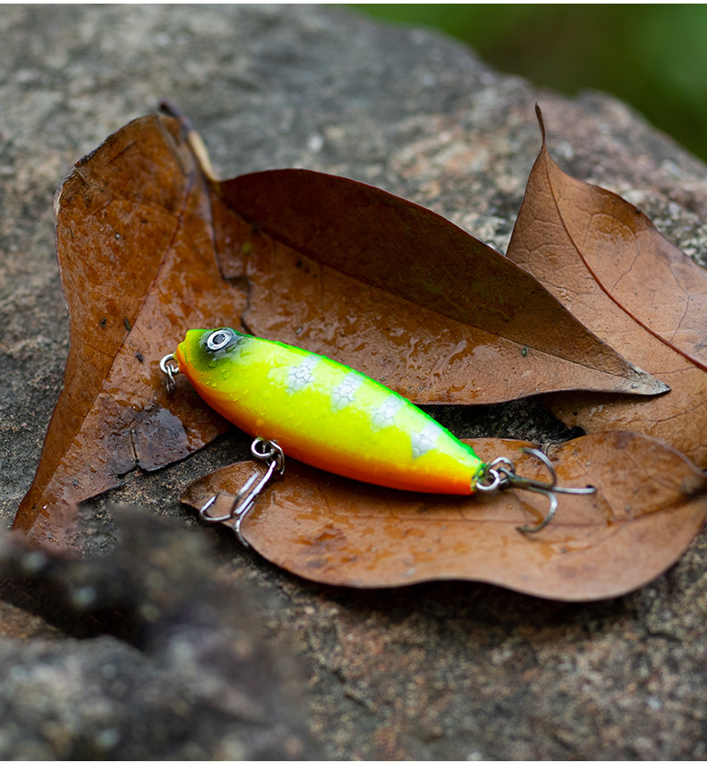 A compact floating pencil lure with a realistic swimming motion for surface strikes. Features sharp black nickel treble hooks and vibrant scale finishes, perfect for micro topwater fishing in freshwater.